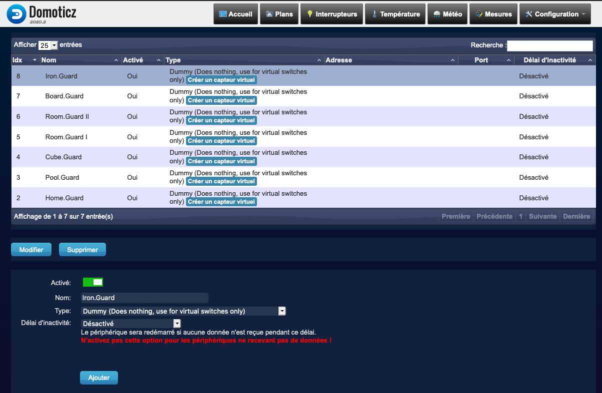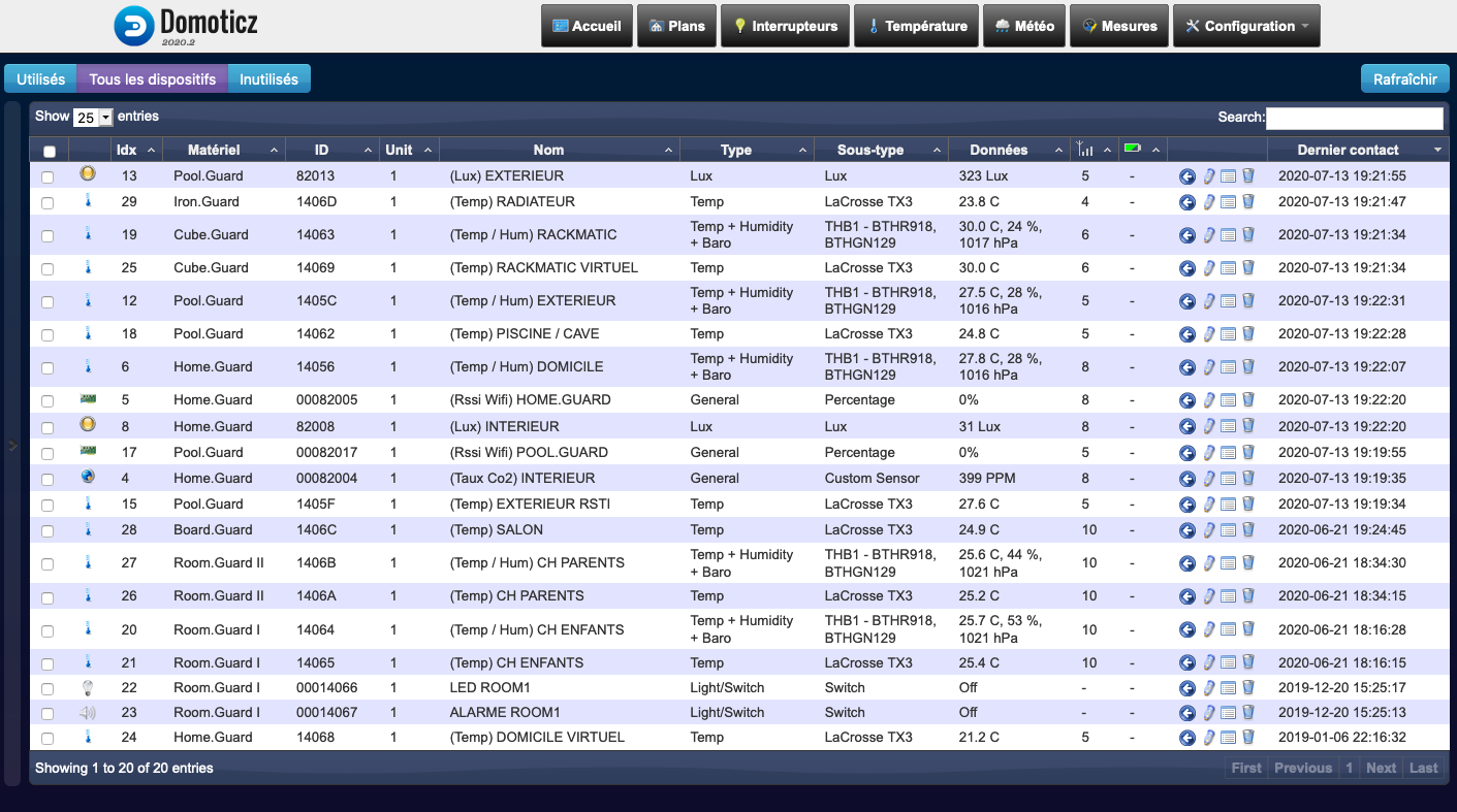 Il ne vous rester plus qu'a retourner sur vos modules et assigner les IDX obtenu via domoticz pour faire remonter les valeurs