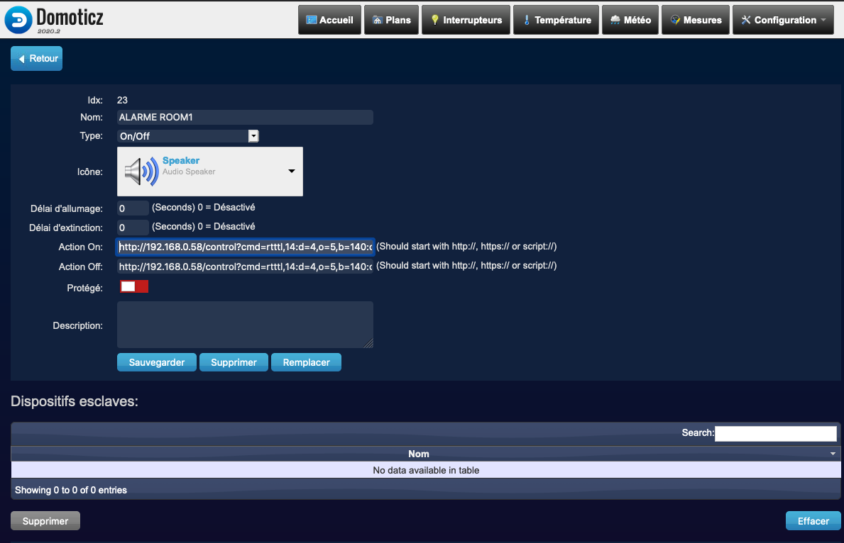 Cette Option vous permettra ou par Clique dans l'interface de Domoticz ou par commande Vocale de faire chanter votre module si celui-ci possède un Speaker. La commande reste assez Basique: