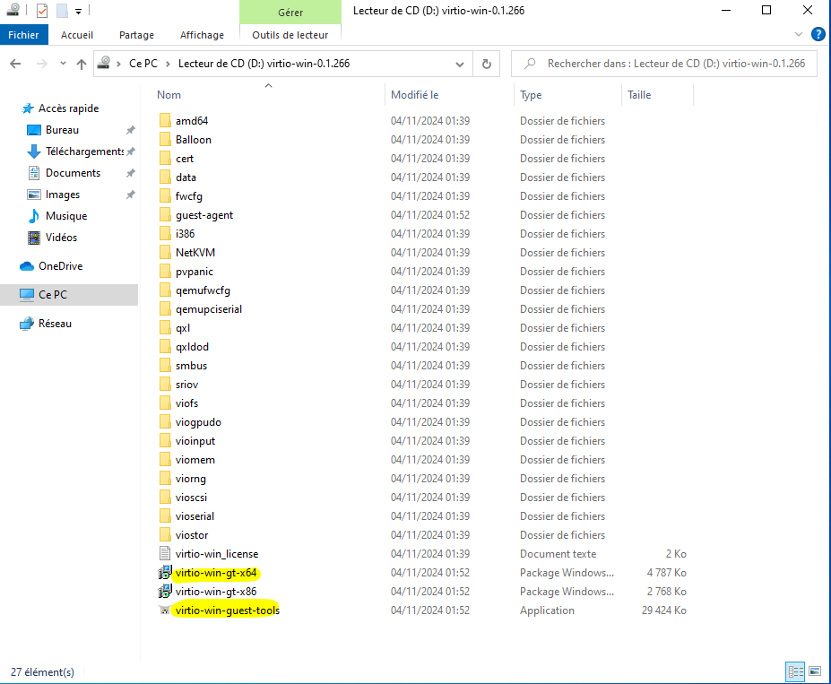 Ensuite il faut installer les drivers et les tools grâce aux exécutables présent à la racine de l'ISO :