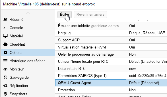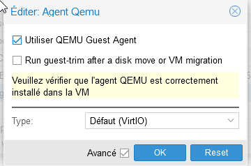 Par défaut pour les VM Windows l'option QEMU Guest Agent est déjà active.