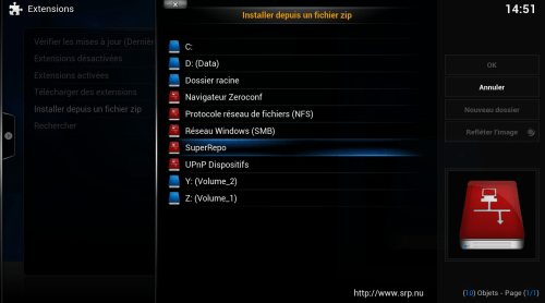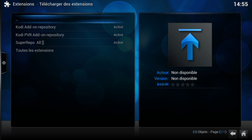 Dans « Extensions – Télécharger des extensions » SuperRepo apparaîtra comme un nouveau dépôt. Notez que si vous désirez profiter des addons vidéo, vous pouvez tout simplement aller dans le menu Vidéo puis Extensions et Plus pour en ajouter. SuperRepo sera automatiquement ajouté à la sélection des addons vidéo et vous devriez avoir des centaines d’extensions vidéo d’un seul coup.