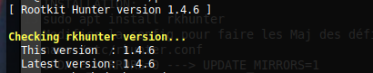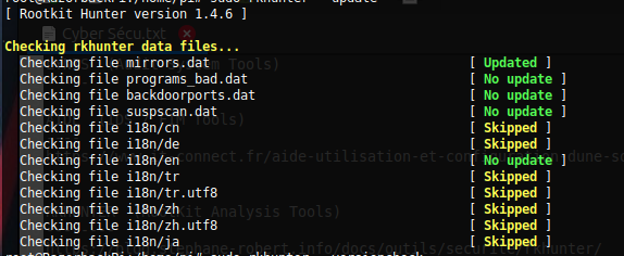 Après l’installation, la première chose à faire est de mettre à jour les bases de données de RKHunter, qui contiennent les signatures de rootkits et autres anomalies :
