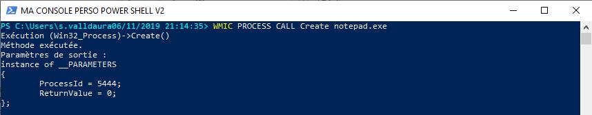 Voici la commande qui permet de créer un processus avec powershell:
