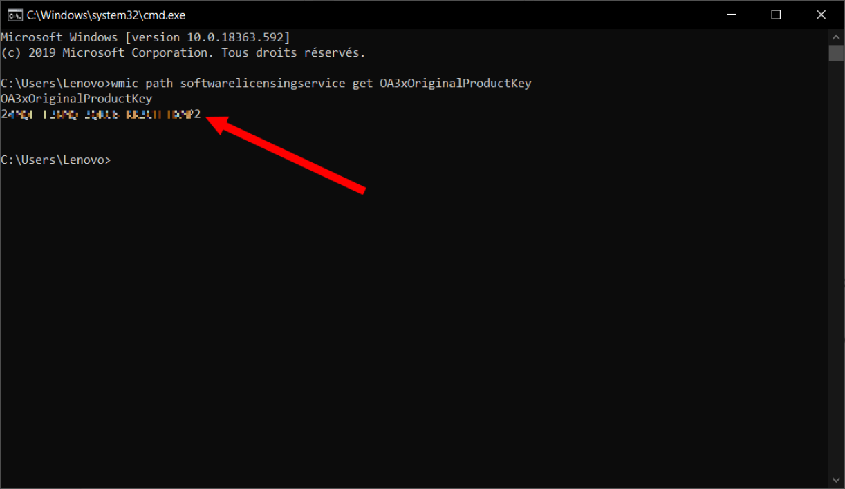 wmic path softwarelicensingservice get OA3xOriginalProductKey